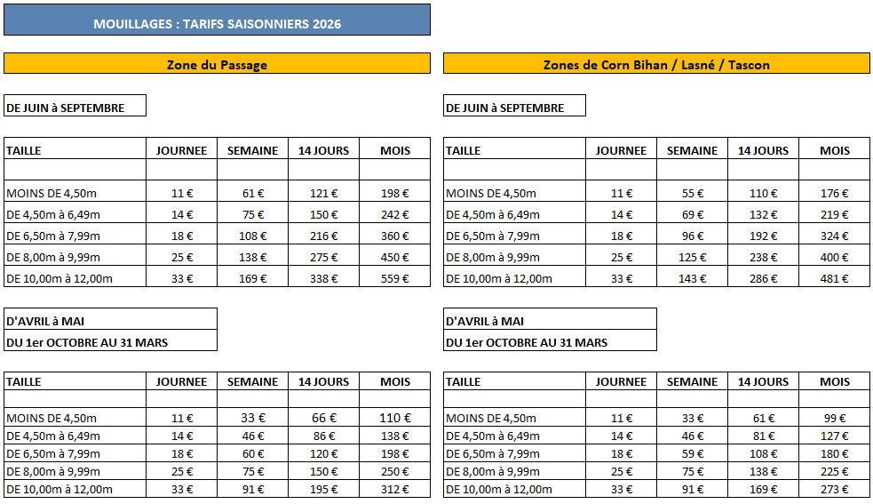Concernant les tarifs professionnels, nous proposons de créer un contrat « Professionnels de la Mer » avec un tarif forfaitaire pour 2026 de :