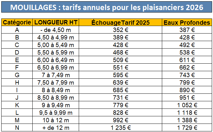 - 450 € pour les bateaux de moins de 6,00 mètres.